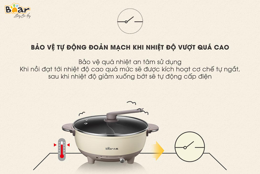 Nồi lẩu uyên ương Bear DHG-B60R6 sở hữu thiết kế hiện đại với hân nồi màu beige thanh lịch kết hợp với tay cầm nâu sữa viền nạm bạc tinh tế giúp tổng thể nồi trông vô cùng sang trọng. Nếu chị em nào đam mê decor góc bếp và bữa ăn trong gia đình thì một em nồi lẩu xinh xắn như này quả thực là lựa chọn hàng đầu, không thể bỏ qua.
